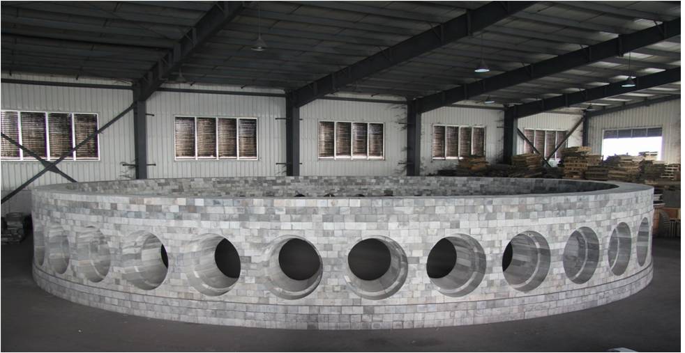 自結(jié)合SiC高爐磚與氮化硅結(jié)合碳化硅制品相比,具有更高的導(dǎo)熱系數(shù),更為優(yōu)異的抗堿、抗熱震、抗渣侵蝕性,主要用于煉鐵高爐的爐身下部、爐腰、爐腹及風(fēng)口等部位。由于其特殊的制作工藝,該材質(zhì)更適合制作性能穩(wěn)定的風(fēng)口大磚。