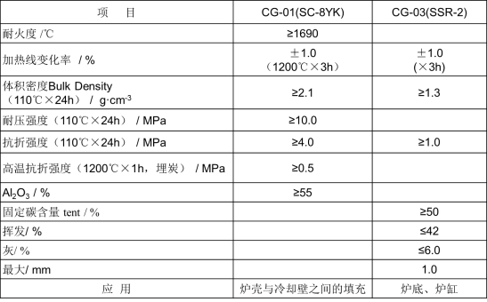 炭質(zhì)搗打料技術(shù)指標(biāo)